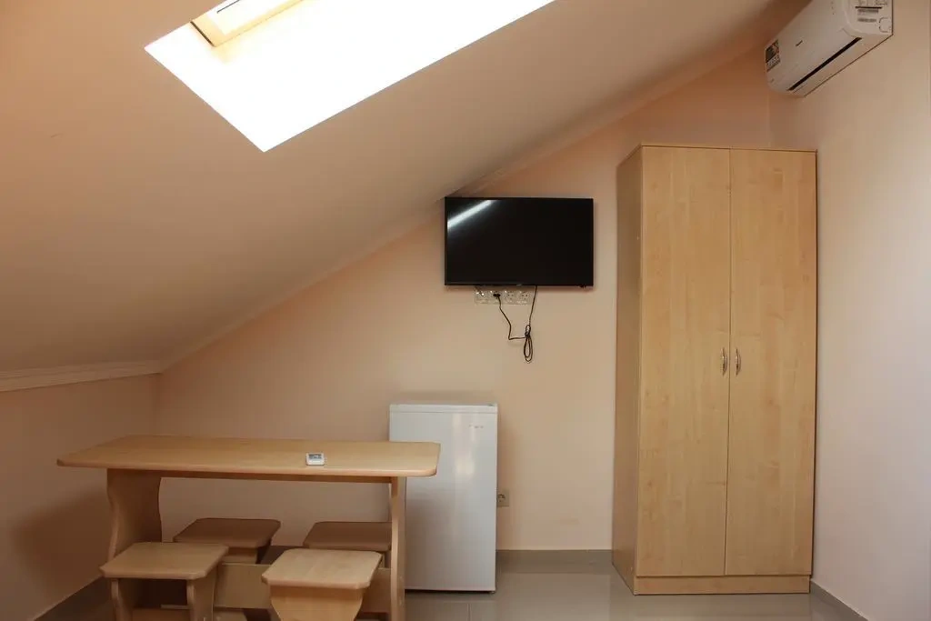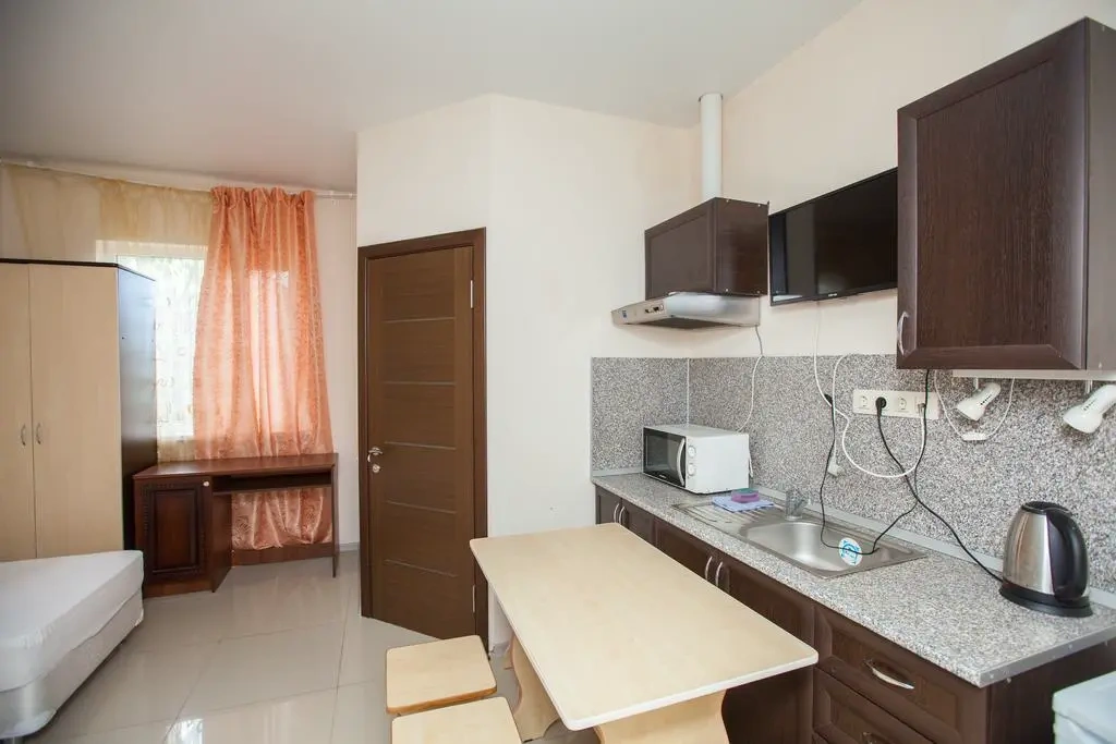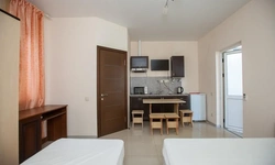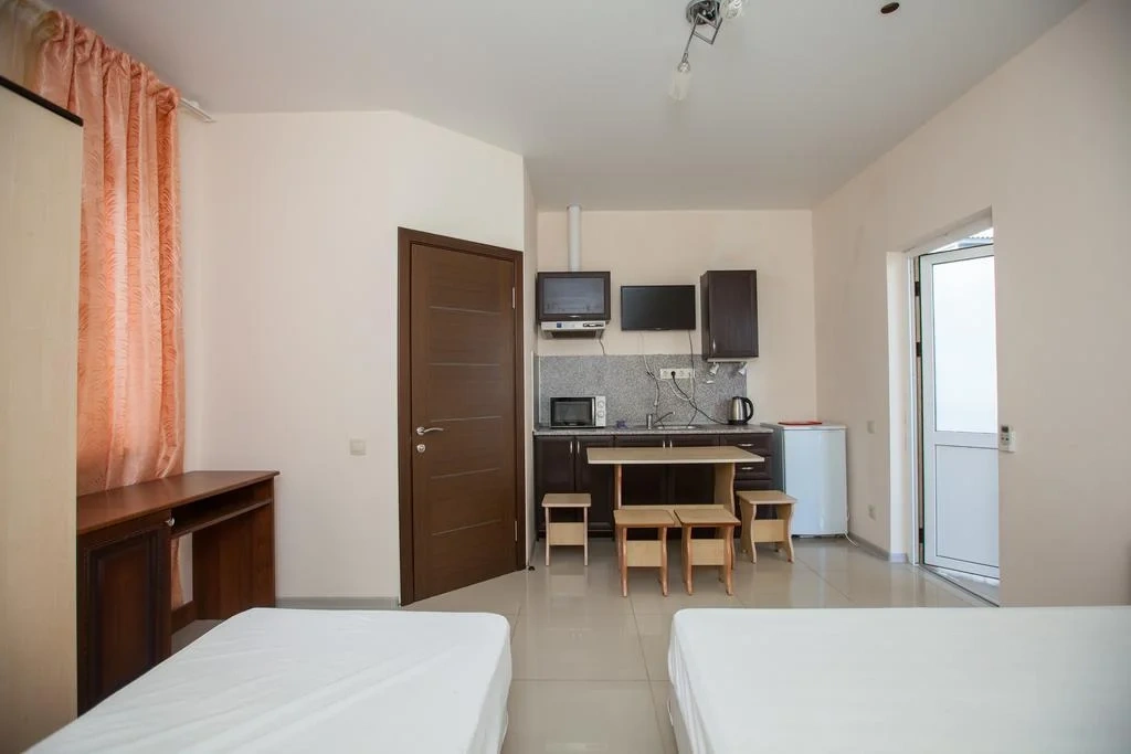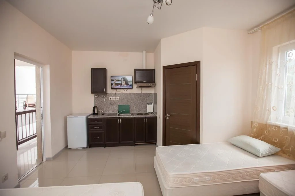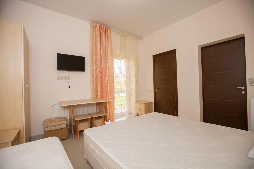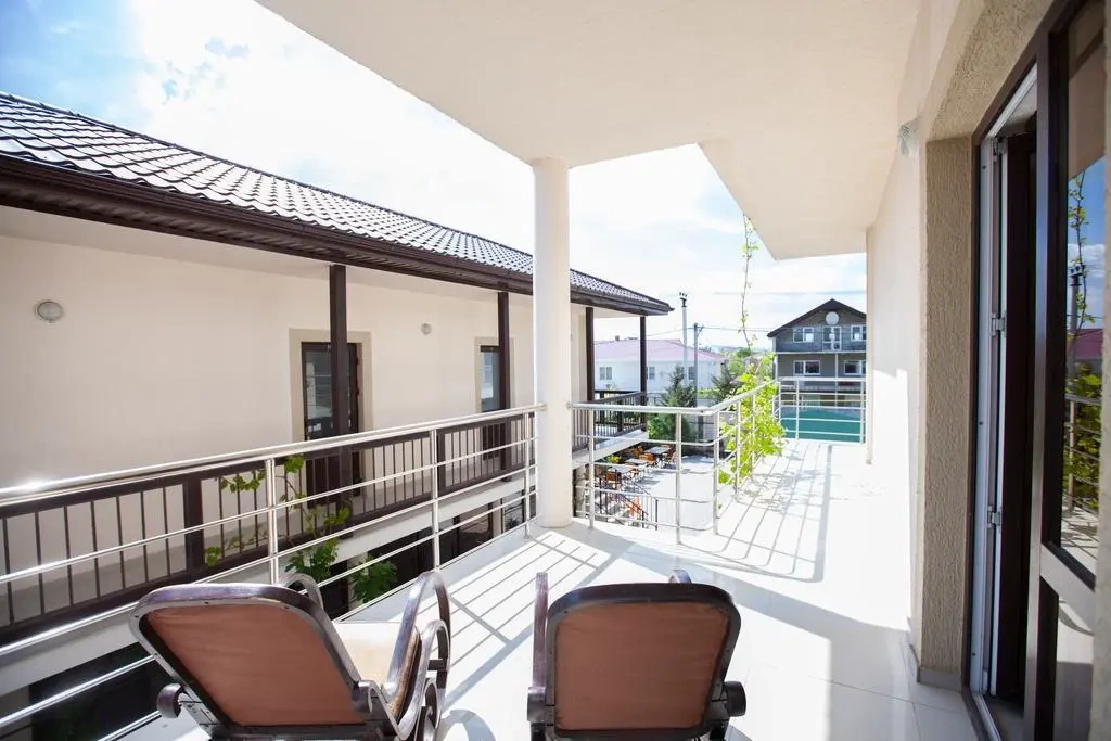В каждом номере гостевого дома «Виноград» есть балкон. В числе удобств — кондиционер и письменный стол.