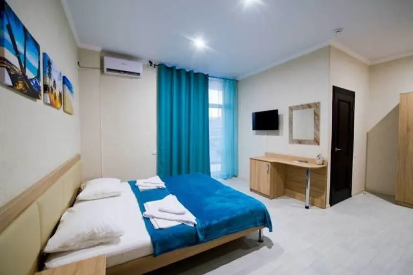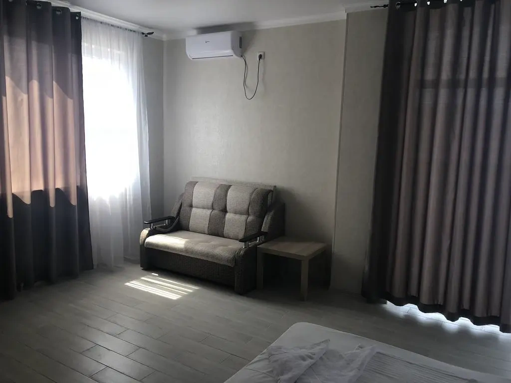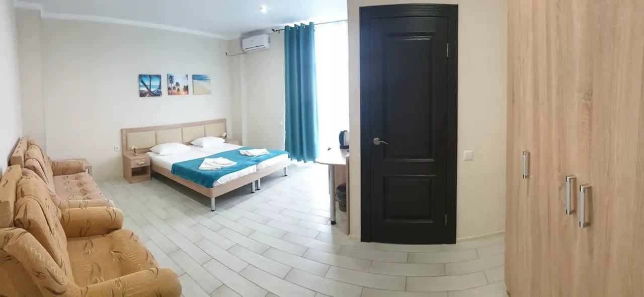 Этаж: В номере: двуспальная кровать,диван, прикроватные тумбочки, шкаф-купе с зеркалом, стол, стулья, ЖК-телевизор, холодильник, кондиционер, балкон.