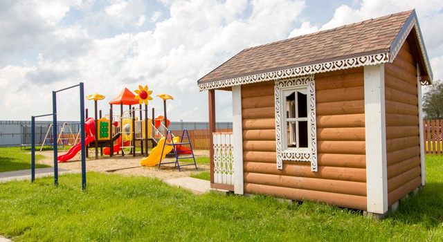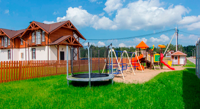• детский городок (2 горки, 2 качелей, детский домик, 2-уровневый турник и т. п.)