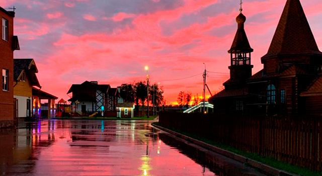 Для верующих людей и ценителей архитектуры на территории поселка располагается уникальный православный храм, который построен из архангельской сосны с куполами в шатровом стиле.