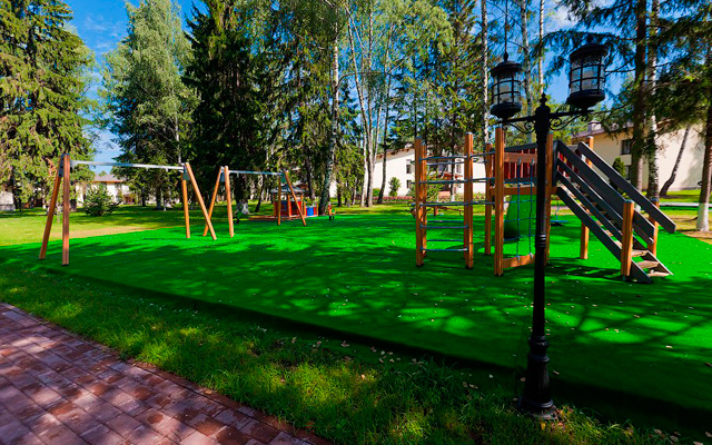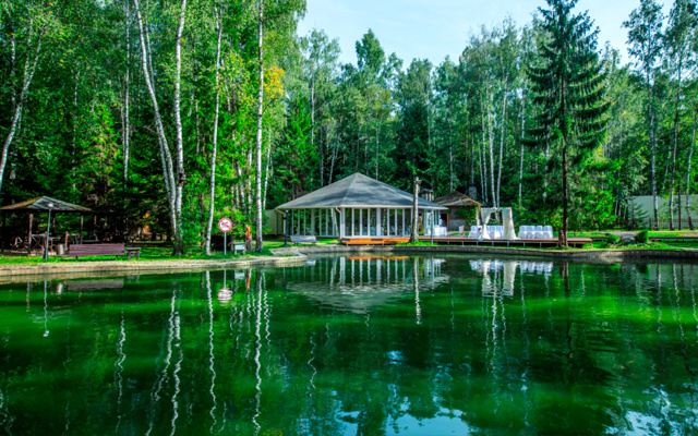 Территория загородного отеля подходит для размеренного и спокойного отдыха. 5 корпусов альпийского типа расположены среди хвойного леса. На территории находятся развлекательный и ресторанный комплексы, камерный сигарный клуб, детская площадка, русские бани с джакузи под открытым небом. Гости с удовольствием отдыхают от городской суеты в гамаках в тени деревьев или в беседках у пруда.