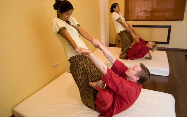 Тайский массаж — особая система упражнений, выполняемая на полу. Это позволяет специалисту управлять вашим телом. Используется глубокая растяжка мышц, щадящие скрутки суставов, элементы пассивной йоги, в комплексе это оказывает огромный положительный эффект оздоровления и тонизации организма.